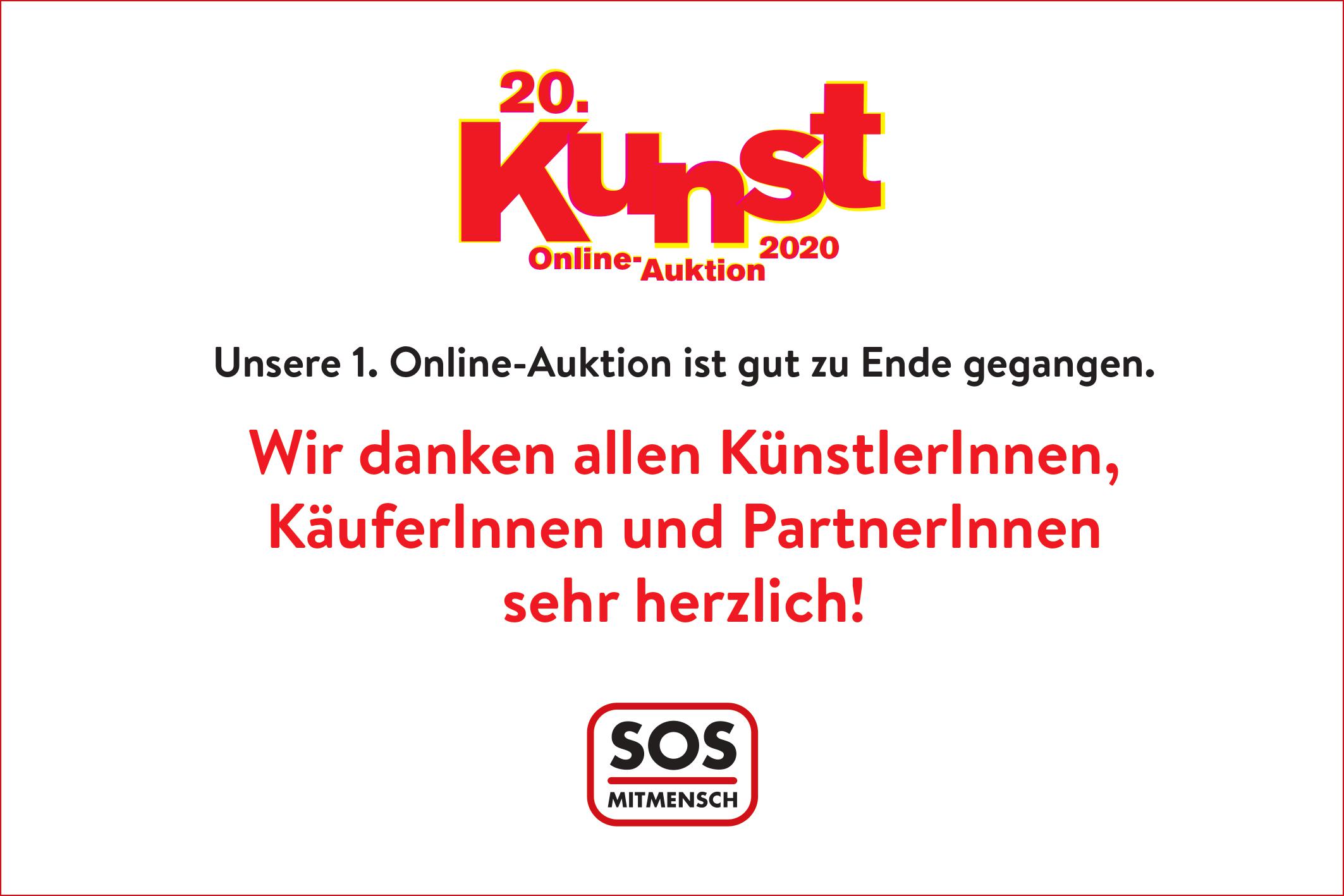 Die 20. Benefizauktion zeitgenössischer Kunst zugunsten der Menschenrechtsarbeit von SOS Mitmensch ist aufgrund der Einschränkungen durch das Corona-Virus erstmalig als eine reine Online-Auktion durchgeführt worden.